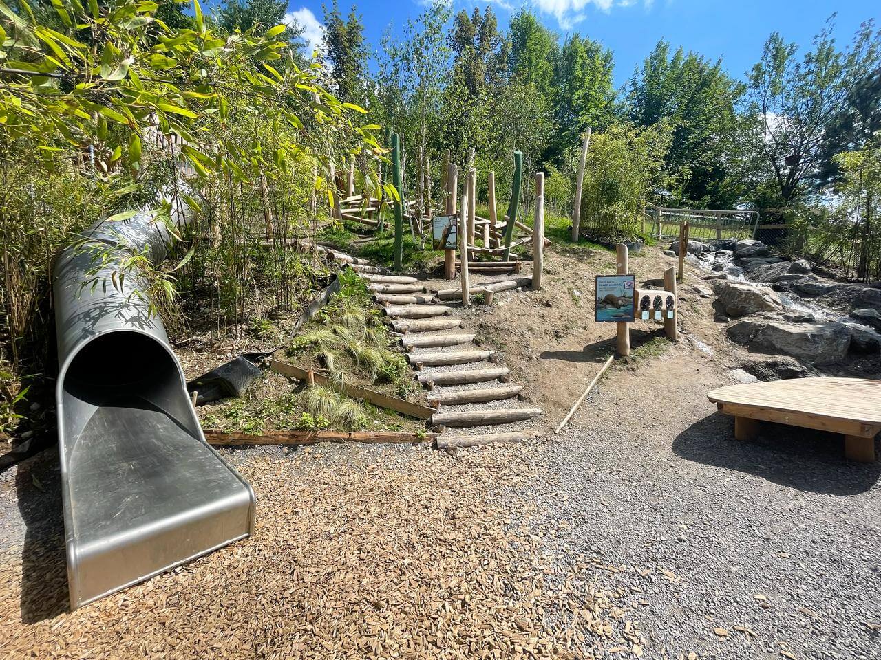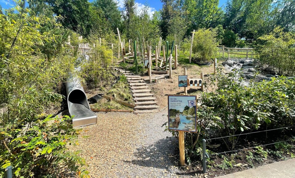 2022 wurde das erste Grossprojekt des Masterplans 2040 eröffnet: Eine Gemeinschaftsanlage für Kleine Pandas und Zwergotter. Auf der stark bepflanzten Anlage mit Bächen, Teichen und Wassereinblick lassen sich die beiden so unterschiedlichen Tierarten hautnah beobachten. Ob die gemütlichen, kletternden Kleinen Pandas in den Bäumen oder die quirligen und schwimmenden Zwergotter am Wasser, irgendwas ist immer los in der WG dieser gefährdeten Arten.