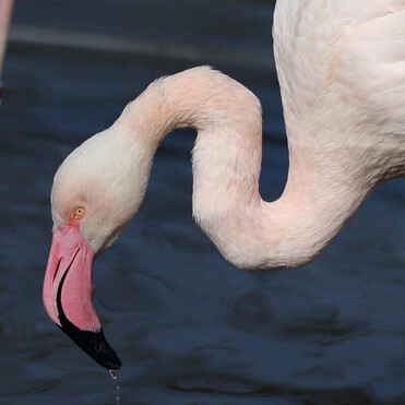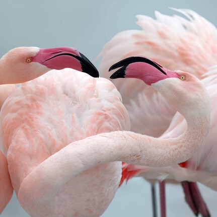 Flamingos sind unverkennbare Vögel: Mit ihrem rosaroten Gefieder, dem speziellen Schnabel und der Ruheposition auf nur einem Bein unterscheiden sie sich stark von anderen Vögeln. Auf ihren Turmnestern schützen sie ihre Eier vor dem Wegspülen bei hohem Wasserstand.